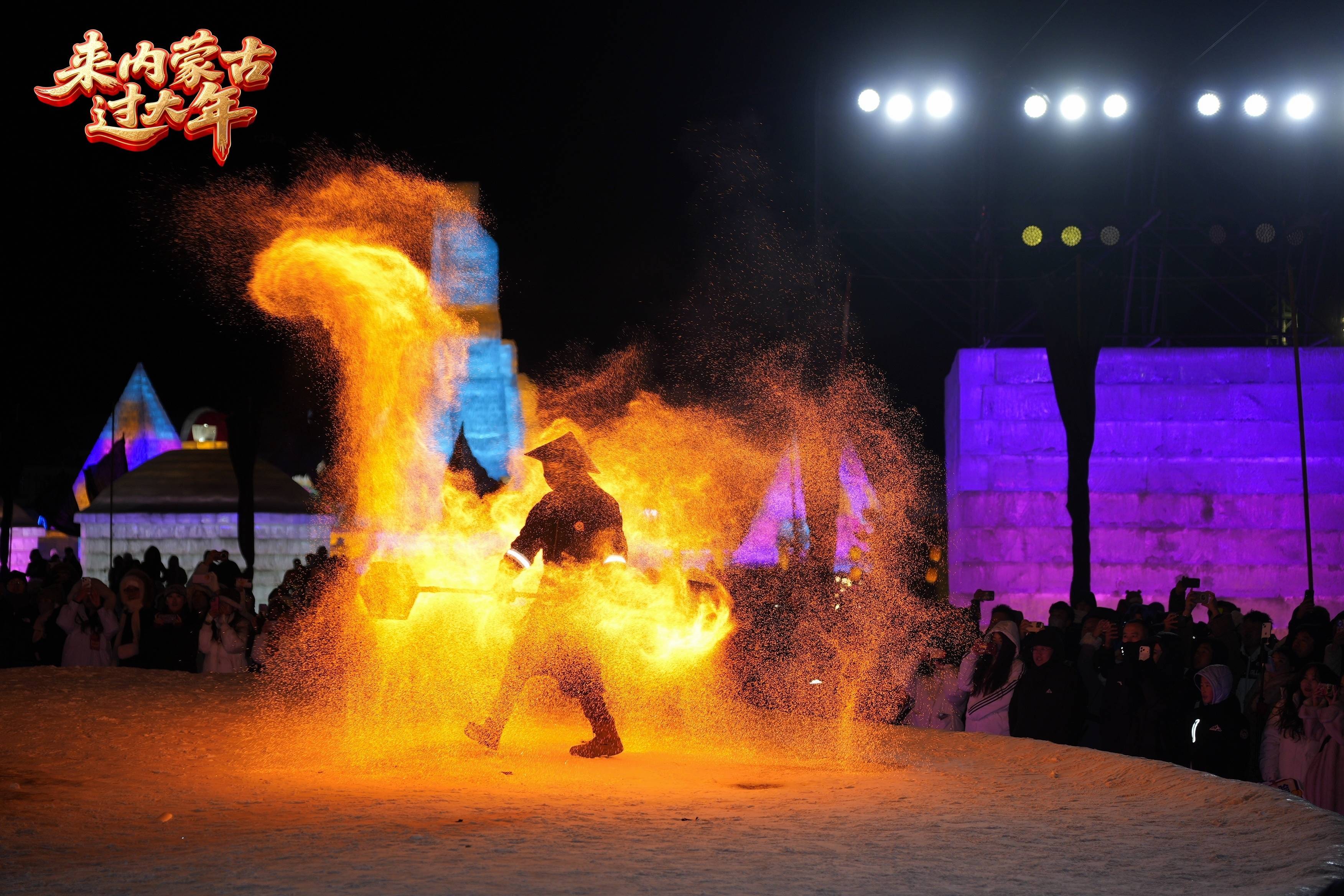新华社呼和浩特1月25日电(记者贺书琛)1月24日晚,内蒙古自治区呼和浩特市大黑河军事文化乐园流光溢彩、人潮涌动,“2026来内蒙古过大年”春节系列活动启动,力图为游客打造一场融合传统年味、潮玩元素与冰雪奇趣的新春文旅盛宴。